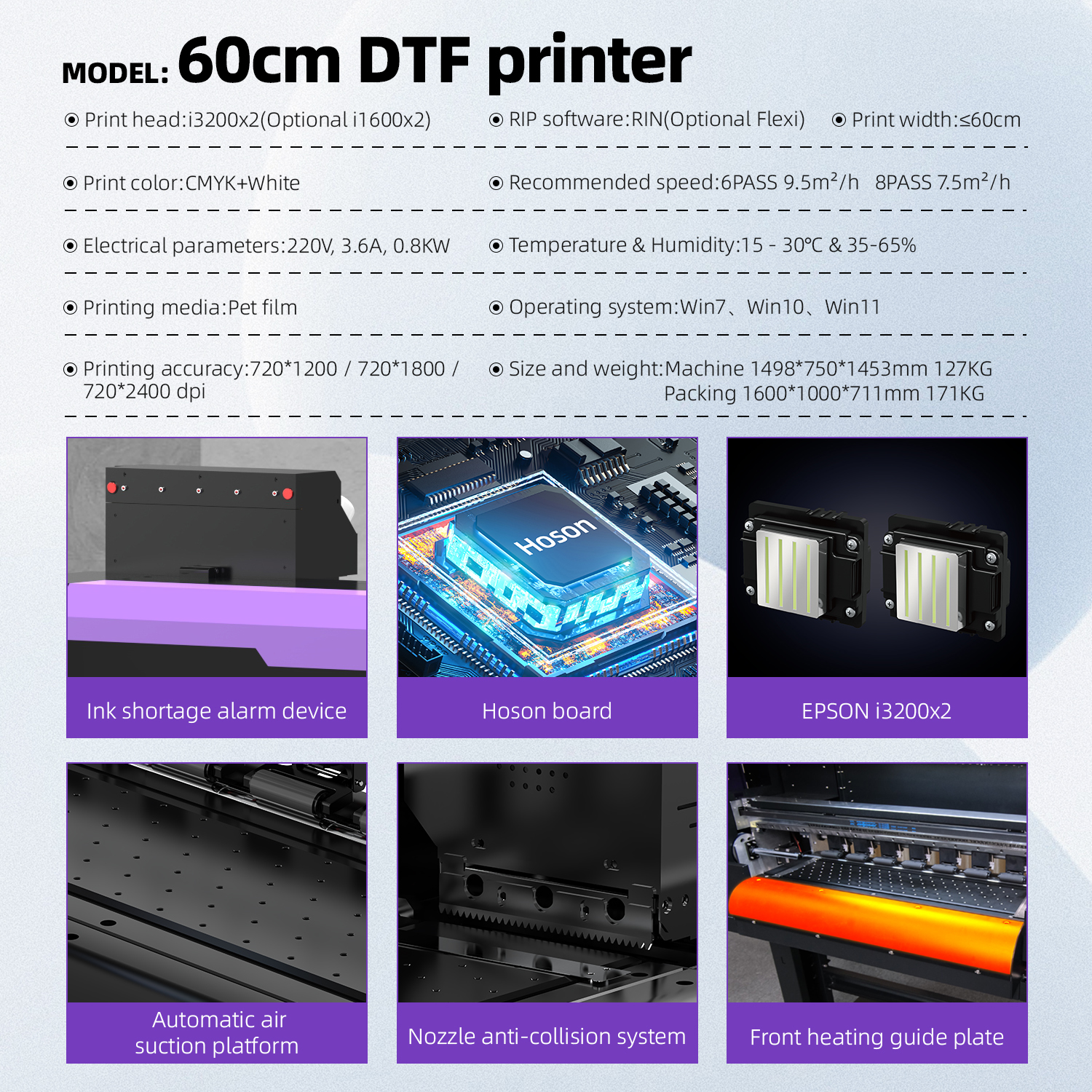 | عرض چاپ: | ≤60 سانتی متر | رنگ چاپی: | CMYK+White(wwww) |