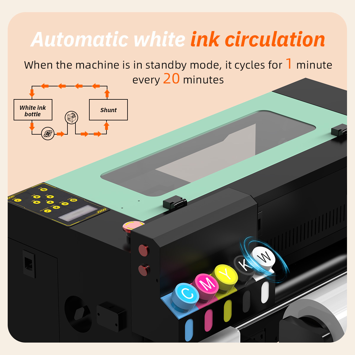 | رنگ چاپی: | CMYK + سفید | سرعت توصیه شده: | 12 پاس 1 متر مربع در ساعت |